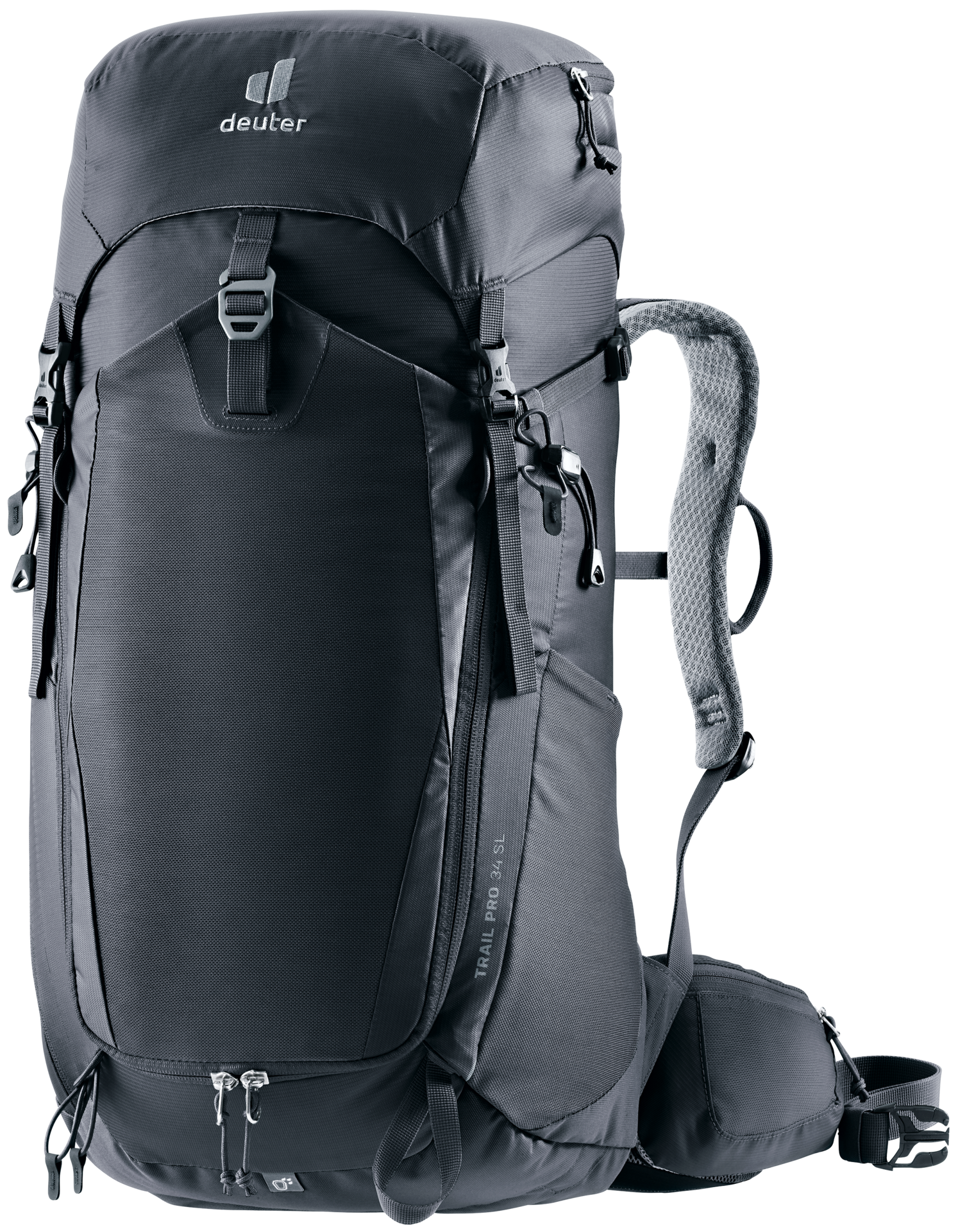 Resumen Mochila técnica Deuter Trail Pro 34 SL pensada para senderismo y trekking de varios días. Sistema dorsal Airstripes con malla Air Spacer ventilada y tirantes perforados para máxima ventilación, reparto uniforme de la carga y buen ajuste en rutas de vía ferrata. Diseño de acceso rápido y compartimentos que mantienen el equipo organizado.
