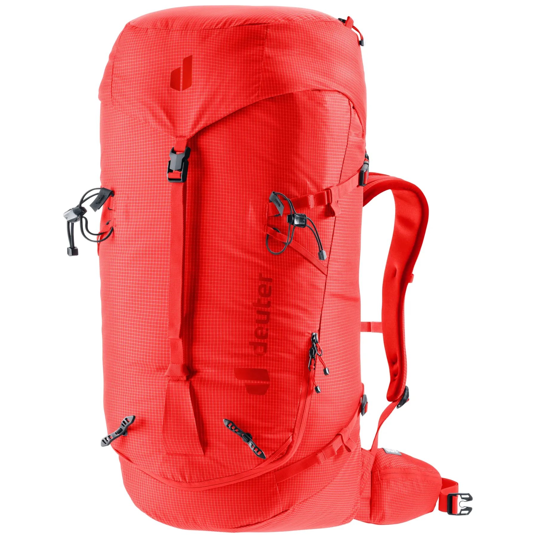 Ideal para trekking, travesías alpinas y actividades técnicas, gracias a su sujeción para piolets en ambos lados, sujeción lateral para esquís, correa para cuerda, portacascos de malla y volumen ampliable, que permiten adaptarla fácilmente a distintos tipos de salida.